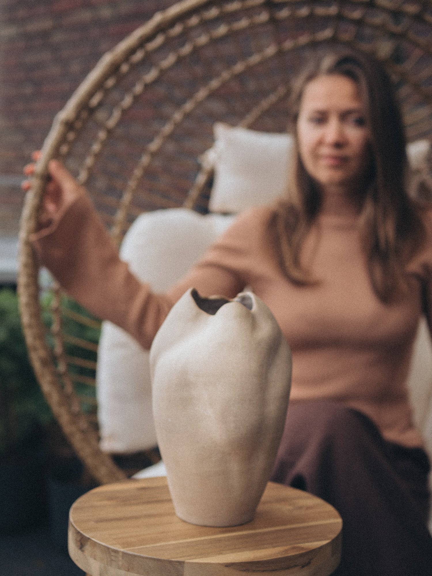 I’m Daria Zaits, a ceramic artist based in Amsterdam. My inspiration comes from nature and the beauty found in the world around us. Working with stoneware clay and natural glazes, I craft handbuilt pieces ranging from sculptural vases to functional bowls, each reflecting the organic elegance of the earth.